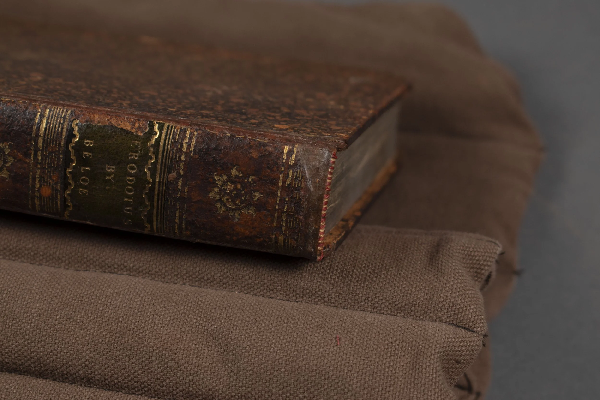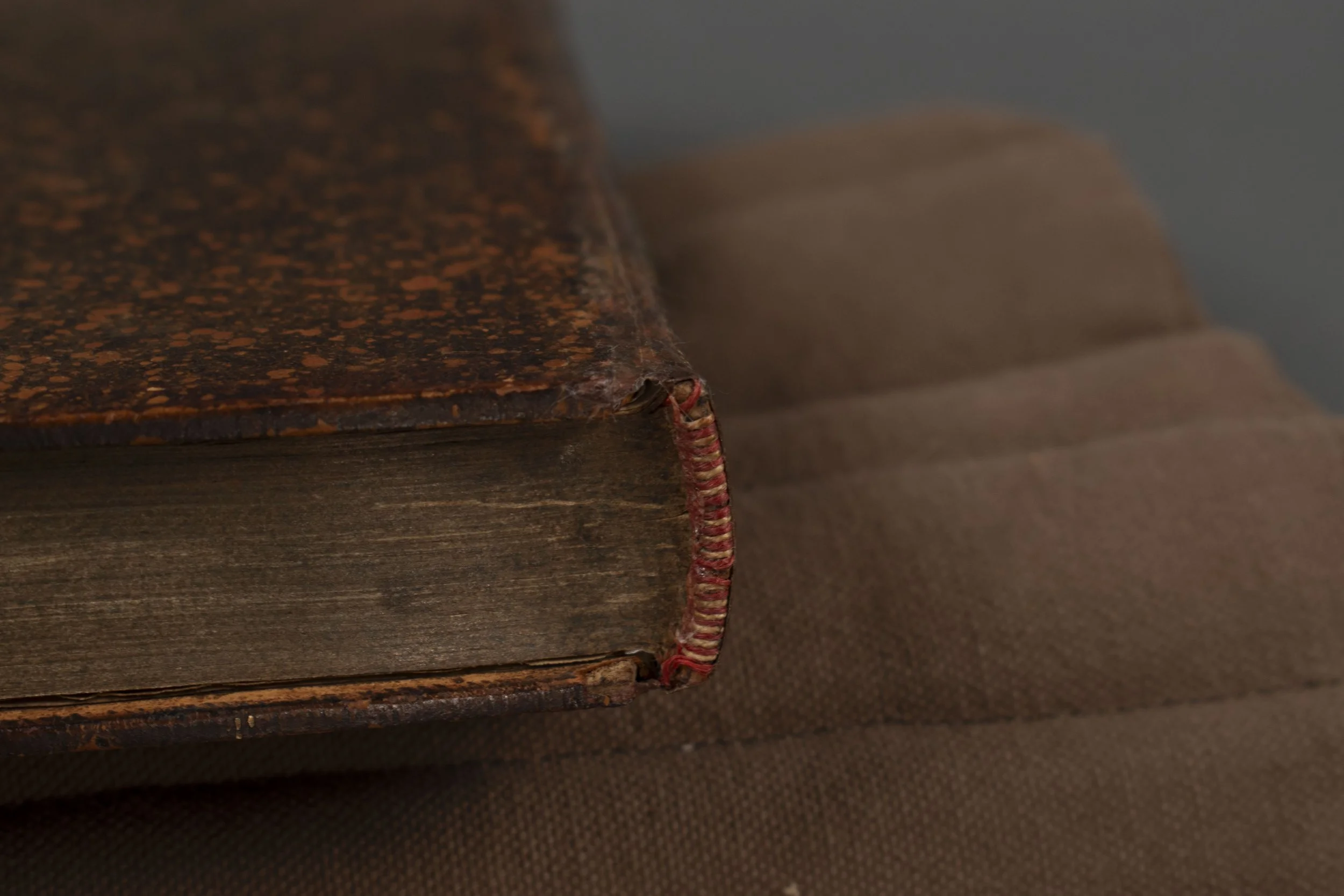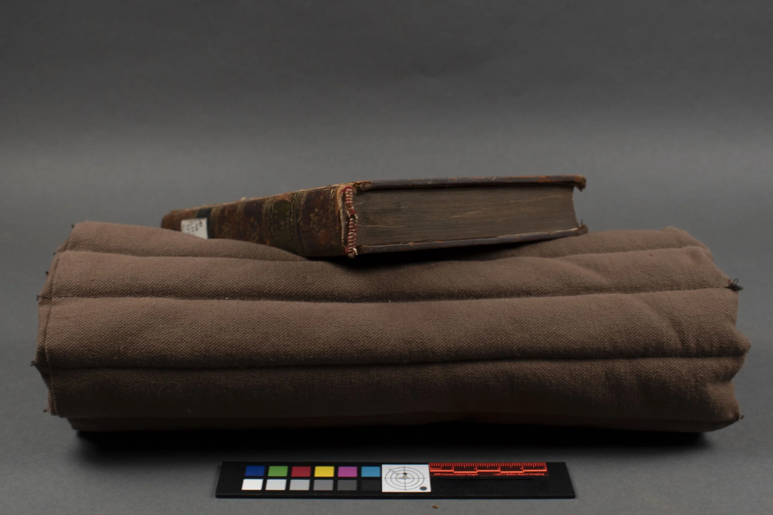 Missing headcap recreated with moriki and attached with Aytex-P to protect endbands.